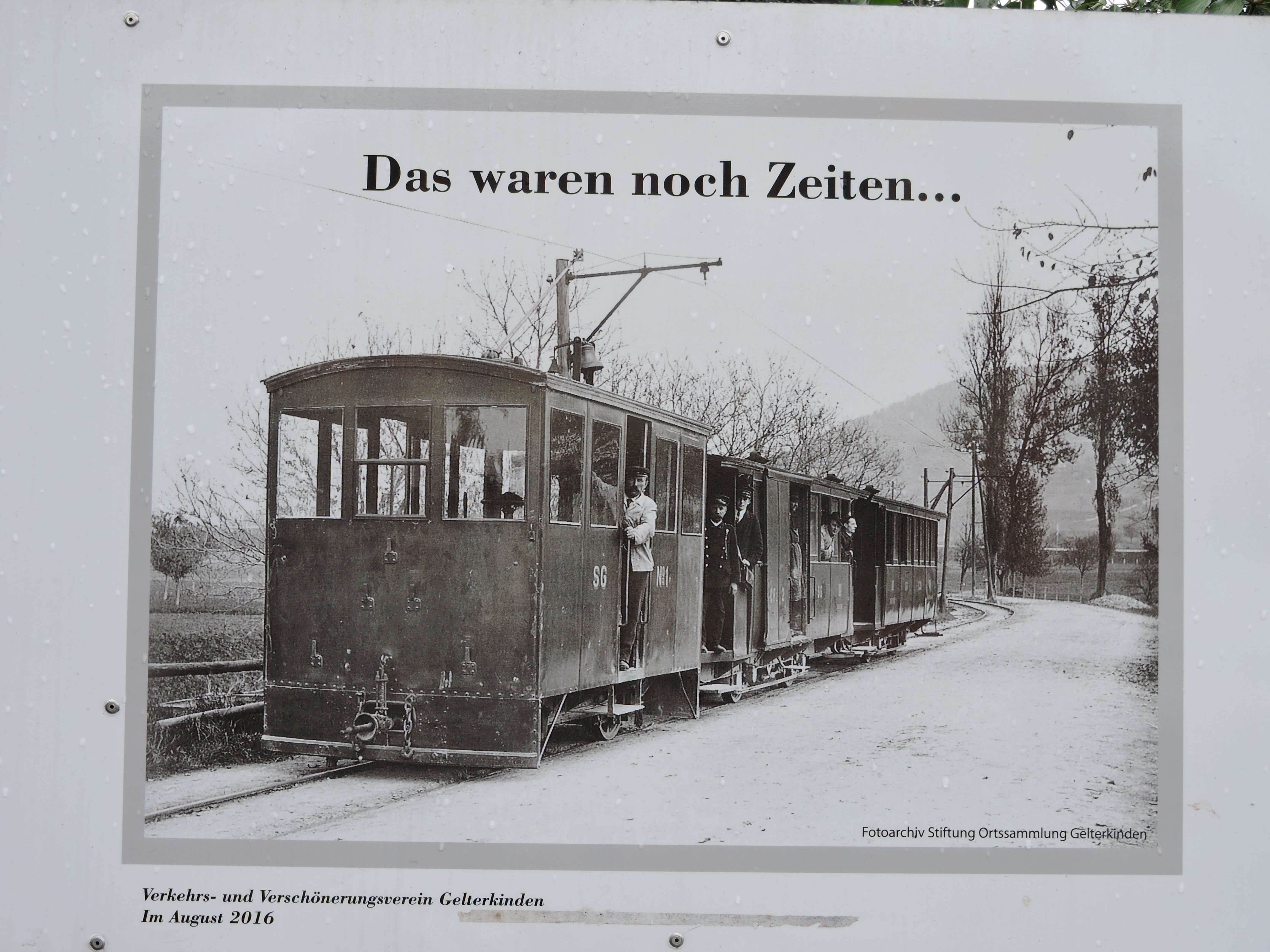 Der Kampf um den Bahnanschluss muss im 19. Jahrhundert ungemein stark gewesen sein. Ganz besonders auch in der Nordwestschweiz. 1858 wurde die Hauensteinstrecke ab Sissach eröffnet. Aber sie führte, oh Schreck, nicht über Gelterkinden. Der Tunnelbau durch den Jura war damals eine grosse Herausforderung. Man baute einen möglichst kurzen Tunnel von 2495 m Länge. Die kurvenreiche Bergstrecke (Basel 277 m.ü.M. – Läufelfingen 559 m.ü.M.) musste beachtliche Steigungen überwinden und bei Güterzügen waren oft Vorspann- und Schiebelokomotiven notwendig. Erst 1916 konnte man dank einem neuen 8 km langen Tunnel die zweite Hauensteinbahn eröffnen, welche bei Tecknau in den Berg gleitet und mit einem dominanten Viadukt für Gelterkinden den Anschluss sicherstellte. Das Netz der Schweizerischen Centralbahn (SCB) wurde erst 1901 durch die SBB übernommen. Heute ist die Hauenstein-Basisstrecke eine der meistbefahrenen Eisenbahnstrecken der Schweiz. Gelterkinden kämpfte von Anfang an für einen eigenen Bahnanschluss. Aber 58 Jahre lang – von 1858 bis 1916 – warten? Man erhoffte sich wirtschaftlichen Aufschwung. In der Bahn sah man das grosse Wirtschaftswunder und fühlte sich komplett abgehängt. Es bildete sich in Gelterkinden ein Komitee, dem 1888 nach einem jahrelangen hartnäckigen Kampf die Konzession für eine eingleisige Normalspurlinie von Sissach nach Gelterkinden erteilt wurde. Ein eigenes Kraftwerk wurde gebaut mit Wasser aus der Ergolz und dem Homburgerbach und damit ein Pionierwerk dank Elektrizität erstellt. Wegen Wassermangel musste 1893 eine Dampflokomotive zugezogen werden. Aus Kostengründen wurde weitgehend die Kantonsstrasse mitgenutzt. Die meterbreite Trambahnlinie konnte am 16. Mai 1891 eröffnet werden. Die Sissach-Gelterkinden-Bahn war nach der 1888 in Vevey eröffneten Strassenbahn die zweite elektrische Bahn in der Schweiz. 2016 wurde auf einem kurzen Eigentrasse ein Stück Geleise und die Fahrleitung mit einem Nachbau der „SG No. 1“, der elektrischen Lokomotive, dank einer Initiative des Verkehrsvereins Gelterkinden eingeweiht. Ein besonderes Denkmal steht so inmitten von Gelterkinden, das für eine einmalige Bahngeschichte steht. Vor 100 und mehr Jahren, von 1891 – 1916 wurde das eigenwillige Projekt umgesetzt. Mit der neuen Basislinie war natürlich für die kleine Bahn „die Luft draussen“. Aber ein Zeitzeuge der besonderen Art ist dieses Werk. Es ist nicht alles so selbstverständlich, was uns heute an ausgeklügelter Infrastruktur zur Verfügung steht!