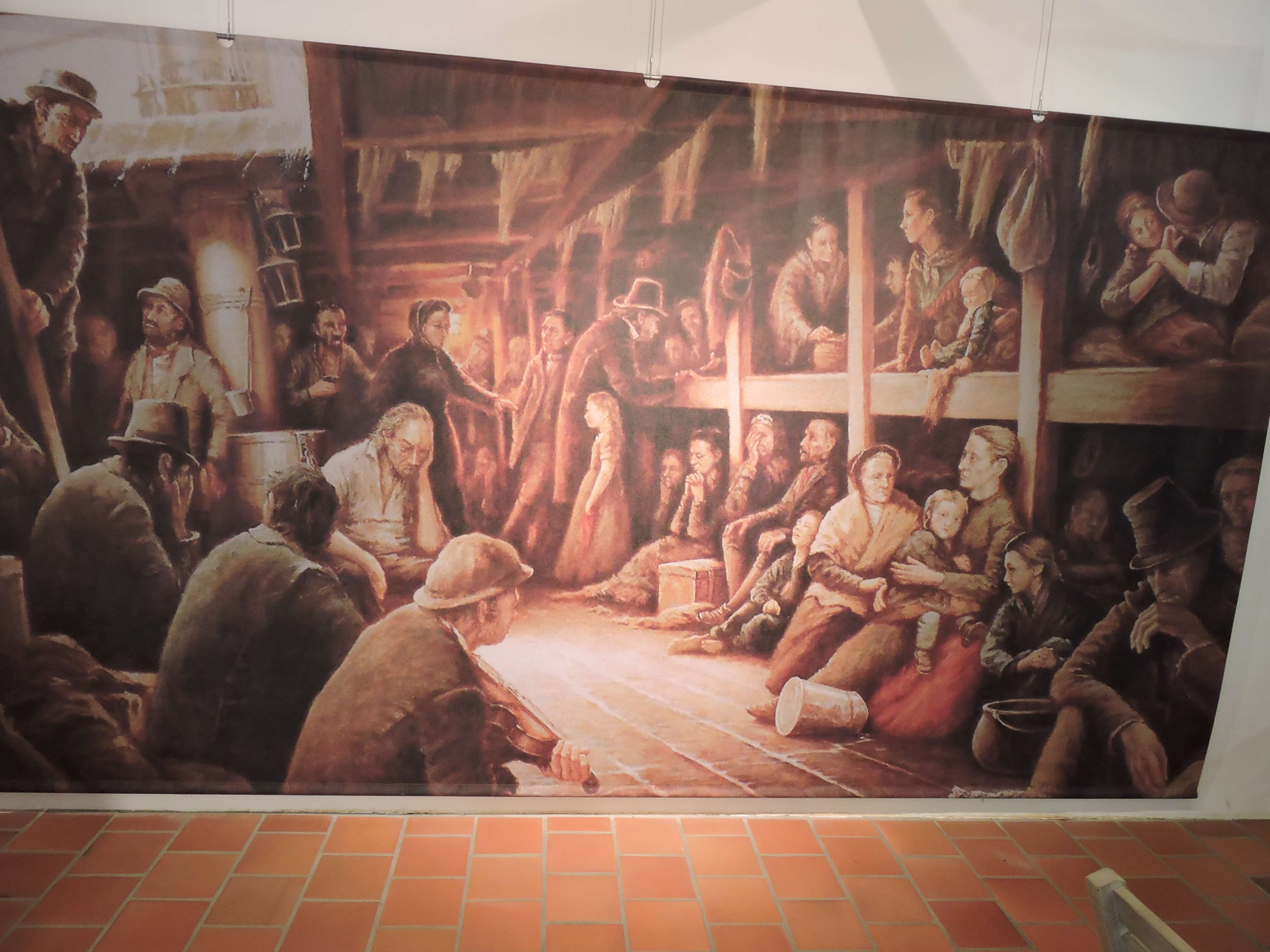 In der Nordwestschweiz gab es zwischen 1770 und 1890 vier tragische Epochen, wo vorab aus wirtschaftlicher Not Landsleute ihr Glück in der Fremde versuchen mussten. Das waren unsere Wirtschaftsflüchtlinge. (1) Die Hungerkrise von 1770/71 war durch Missernten verursacht. Nach nassem und zu kaltem Wetter stiegen die Lebensmittelpreise massiv an. Innert zwei Jahren fuhren damals ab Basel mit einem Schiff 170 und zwei Mal 300 Personen nordwärts. (2) Zur Zeit der Helvetik 1798 bis 1803 war die politische Instabilität in der Schweiz sehr groß. Schon seit der Revolution 1798 waren viele Gemeinden in hohe Schulden geraten. «Es wurde nur darauf abgesehen die Abgaben von Bauern zu erheben. Schon lange hatte man eine Besserung versprochen. Jetzt lässt man die alten Abgaben noch neben den Neuen stehen», schrieb 1803 ein Landarbeiter. 1803 und 1806 ist eine auffallend große Zahl an Auswanderungswilligen weggezogen. (3) 1815 brach im April der erloschene Vulkan Tambora mit solcher Wucht aus, dass Feinpartikel, die er in die Stratosphäre schleuderte, eine globale Abkühlung um ein Grad verursachten. Der Sommer 1816 brachte der Schweiz statt Sonne nur Regen und Unwetter. Nahrungsmittelspekulation grassierte und Armenspeisung wurde eingerichtet. Man sprach in jener Zeit von 10.000 Amerika-Emigranten. Der Anteil aus der Nordwestschweiz war bedeutend. (4) Ab den 1850er-Jahren war der Niedergang der Heimposamenterei in vielen Regionen groß. Die Industriealisierung traf hier die Dörfer besonders stark. Dazu kamen schlechte Ernteerträge und obendrein noch die Kartoffelkrankheit. In der zweiten Hälfte des 19. Jahrhunderts wanderten schweizweit gegen 330.000 Menschen nach Amerika aus. Die mühsame Überfahrt ab Hamburg dauerte im Segelschiff (Bild) 33 Tage. – Im Dorfmuseum Oltingen BL ist über die Auswanderung eine fundierte Ausstellung zu sehen. Gleichzeitig kann das kulturhistorisch wertvolle Ensemble in der Kirche besichtigt werden mit dem eindrücklichen Wandbild über das Jüngste Gericht. Die Glocken werden hier noch von Hand geläutet. Das Museum und die Kirche sind jeweils am ersten Sonntag des Monats offen von 10.00 bis 12.00 Uhr und 14.00 bis 17.00 Uhr.