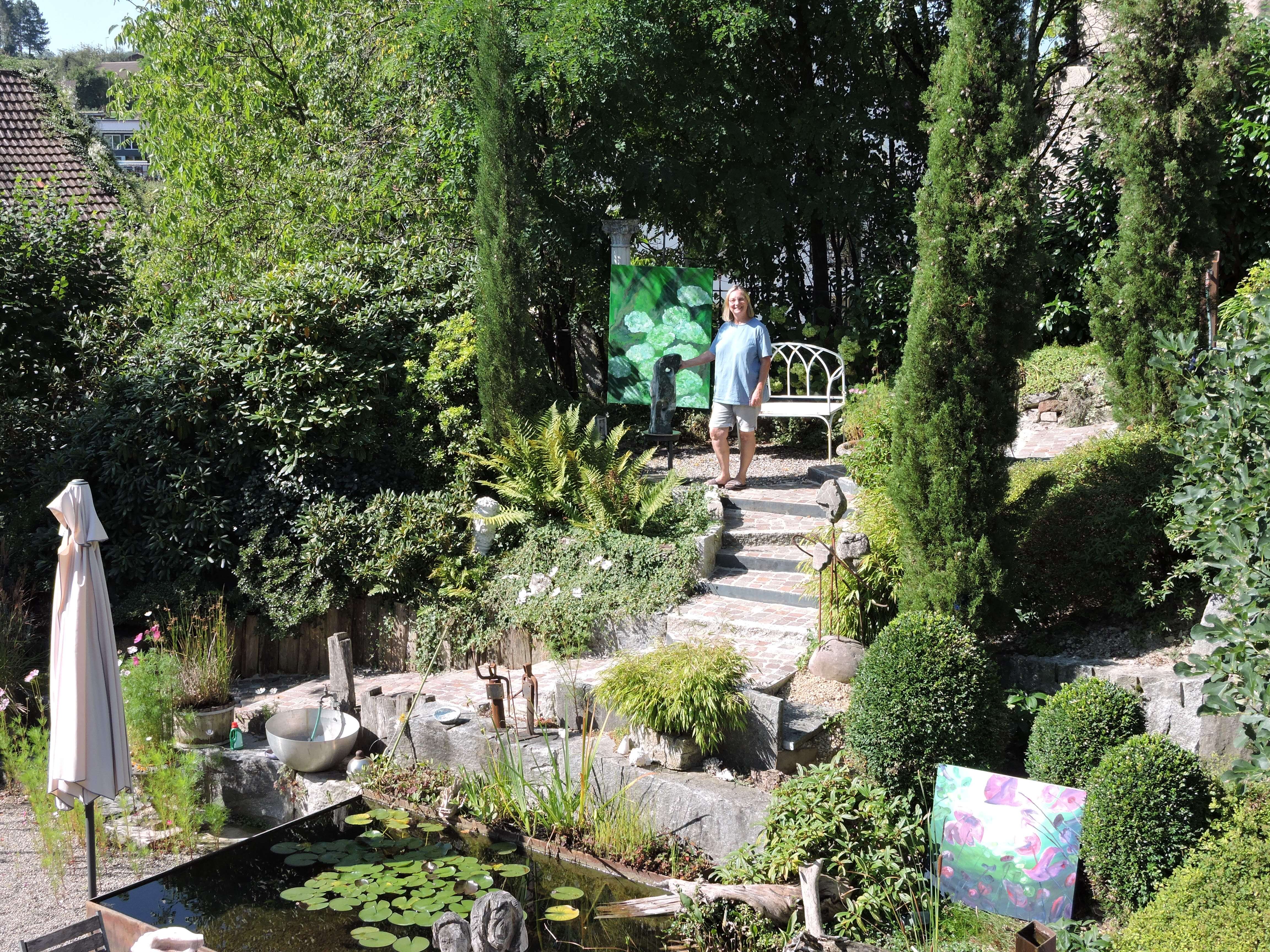 In Effingen an der Dorfstrasse ist an Stelle der einst viel befahrenen Bözbergroute längst Beschaulichkeit, dörfliche Ambiance und reiches künstlerisches Schaffen heimisch geworden. Zwischen dem markanten «Dr. Laur-Haus» und der leider stillgelegten alten Gastwirtschaft Glocke, liegt hangwärts eine neue dorfgerecht eingefügte, grosse Liegenschaft. Der abbruchreife Altbau an der Dorfstrasse 57 wurde vor zehn Jahren von der Künstlerin Silvia Seifert und ihrem Partner erworben und der Neubau mit dem Garten rundum ist nun der ideale Ort für ihr Schaffen. Einige Grundmauern blieben erhalten und vor allem der Gewölbekeller, welcher heute für Ausstellungen dient. Silvia Seifert wurde in Brunnen geboren, verbrachte einen mehrjährigen Aufenthalt in einem Künstlerdorf in Südfrankreich und ist seit 2001 als freie Künstlerin, Galeristin und Kuratorin tätig. Sie betreut auch die Ausstellungsorganisation im Salzhaus Brugg und ist seit 2011 Vorsitzende der internationalen Künstlergruppe Polygon, wo sie sich für Projekte und die Kommunikation engagiert. Ihre Kunstwelt ist die Malerei, vor allem Blumenmotive in allen Spielarten. Weiter sind Skulpturen ihre besondere Leidenschaft. Sie bearbeitet Steine aus dem Aargauer Jura und aus aller Welt. Besondere Vorliebe hat sie für Sandsteine entwickelt, als Beispiel aus dem Steinbruch Röt bei Gansingen oder für feinste Schichtstrukturen von Steinplatten. Sie hat kürzlich wieder in Atelier, Keller und Garten in Effingen eine Ausstellung durchgeführt und sie wird am 21./22. September in «Offene Ateliers 2019» in Rheinfelden in der Trinkhalle vertreten sein. In den letzten Jahren hat sie an einer Vielzahl von Ausstellungen mitgewirkt, vorab in der Nordwestschweiz. Prägnant lässt sich ihr Schaffen in Kürze fassen: «Vitale Farbigkeit, grosszügiger, verschwenderischer Farbauftrag und pastose Pinselstriche kennzeichnen die Bilder. Die Skulpturen sind oft abstrakt in den verschiedensten Steinarten und laden immer zum Berühren ein.»