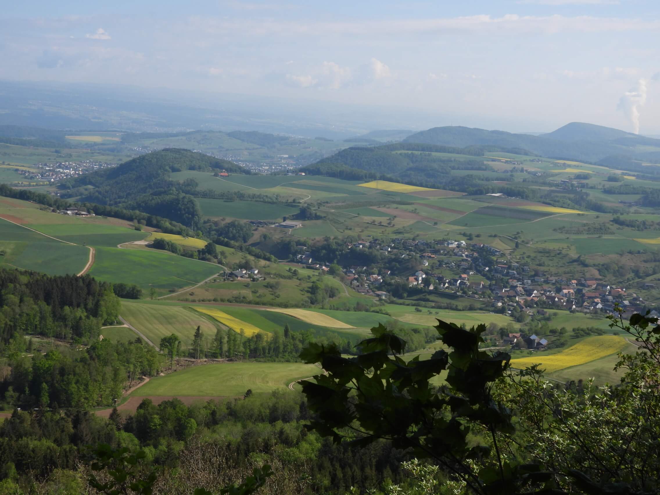 Auf einer Wandertour wurde ich angesprochen und gefragt, wo nun die wichtigsten Unterschiede zwischen Falten-und Tafeljura zu finden seien. Dieses Bild von der Burgflue (791 m), welche zum Faltenjura gehört, zeigt mit den Rapsfeldern eindrücklich die Ackergründe im oberen Fricktal, welche für den Tafeljura typisch sind. Das Bild entstand Ende April. Ein ähnliches und vergleichbares Bild wird sich bei der Reifezeit der Getreidefelder im August ergeben. Im Faltenjura dominieren Graswirtschaft, Weide und Wald. Die typischen Tafeljura-Hochebenen von Fürberg/Röti, Chornberg und Altenberg liegen im Schnitt mit einer Höhe von 530 bis 580 m rund 100 m über dem Talgrund oder den Dorfsiedlungen. Der Faltenjura wurde mit der letzten Alpenfaltung vor 15 bis 5 Millionen Jahren durch gewaltige Schubkräfte von Süden her und durch die Prellbockwirkung von Schwarzwald und Tafeljura gebildet. Die Kalksteinschichten wurden nach oben gefaltet oder an Bruchstellen nach oben geschoben. Im Aargau wurden die Schichten vom Tafeljura abgerissen und teilweise auf dessen Südrand geschoben. So kommt es häufig vor, dass jüngere Gesteine von älteren überdeckt sind. Man kann den Faltenjura in zwei Ketten nördlich und südlich aufgliedern. Die Nordkette beginnt im Westen mit der Geissflue und endet mit der Lägeren. Den Anfang der Südkette macht die Egg oberhalb Erlinsbach und den Abschluss der Chestenberg. Der Tafeljura beginnt nach den Juraketten, welche das Mittelland gegen Norden hin begrenzen. Er erstreckt sich über die Kantone Baselland und Aargau und zieht weiter über den Rhein hin in den Schaffhauser Randen. Aus tektonischer Sicht ist der Aufbau des Tafeljuras relativ einfach. Dennoch gibt es aus geologischer Sicht Störungszonen und Überschiebungen. Eine fast unermessliche Fülle von weiteren Informationen erschliesst das Buch «Fossiliensuche im Tafeljura», ISBN 978-3-89937-169-7. Der Verfasser Ronald Ottiger aus Tegerfelden ist ein gründlicher Jurakenner. Er sucht, sammelt und forscht seit 40 Jahren. Ein Schwerpunkt ist dabei der Tafeljura.