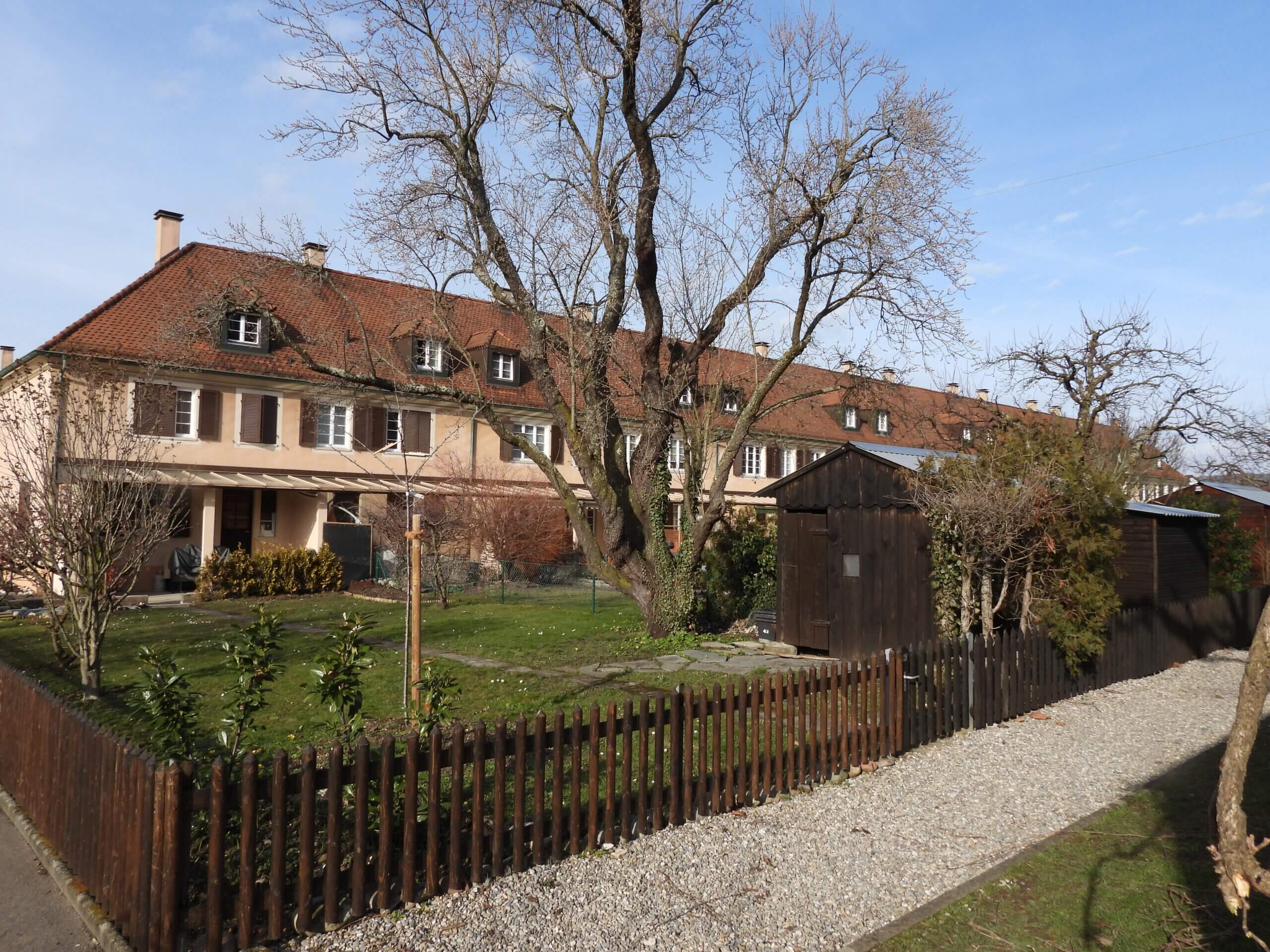 Ein Lebenswerk hat Hans Frei besonders begleitet. Von 1919 bis zu seinem Tod 1932 war er Präsident der Wohnsiedlung Freidorf in Muttenz. Er ist in Wölflinswil aufgewachsen. Sein Vater war hier Gemeindeammann, Förster und Grossrat. Hans machte eine Setzerlehre als Typograf und Basel wurde seine neue Heimat. Er wurde Zeitungsredaktor und war mit grossem politischen Feuer am Werk, war er doch ab 1888 als Grütlianer in einem vaterländisch orientierten Arbeiterverein tätig. Er wechselte später zur SP, wurde Grossrat und war von 1902 bis 1919 Nationalrat. Er hat unermüdlich ein Werk mitbegründet, das bis heute Achtung verdient und in städtischen Agglomerationen wieder hochaktuell ist: Der genossenschaftliche Wohnungsbau. Von 1919 bis 1921 wurde nach Plänen von Hannes Meyer eine Siedlung, halb Juradorf, halb Gartenstadt, errichtetet. Es entstanden 150 Häuser mit Vor- und Pflanzgärten und mit einem zentralen Genossenschaftshaus für Laden, Schule (in den Anfangsjahren) Verwaltung und Begegnungsräumen. Es war eine konkrete und mutige Antwort auf die grassierende Wohnungsnot nach dem 1. Weltkrieg. 2019 wurde das 100-Jahr-Jubiläum gefeiert und im Nahbereich wurde 2006 die Siedlung mit Coop-Laden, Restaurant und einem Mietwohnungsangebot von 50 Wohnungen erweitert. Aber das Pionierprojekt mit einfacher und konsequenter Architektur ist als Freidorf bis heute intakt geblieben. Eine typische Wohnzeile (Bild) hält das fest. Es war ein Baumodell auf «der grünen Wiese», 2 km vom Dorfkern Muttenz und 3 km von Basel entfernt. Massgebend hat die Coop-Genossenschaft (früher Konsumverein) das ursprüngliche Projekt finanziert und bis heute mitgetragen. Es gilt bis heute die Kostenmiete und das genossenschaftliche Verhalten in einer grossen Wohngemeinschaft als tragender Leitgedanke. Nach über 100 Jahren steht dieses Werk im Kontrast zu den Schlagzeilen, die gerade jetzt wieder in Basel und in anderen Grossstädten dominieren: Knapper Wohnraum, immer wieder Kündigung grosser Wohnzeilen für Totalsanierung oder Abbruch und Neubau. Bis zum unteren Mittelstand haben viele Mühe, die 50 und mehr Jahre in einem Quartier gewohnt haben, wieder eine zahlbare Wohnung zu finden. Die Stadt Basel hat das Problem erkannt. Es werden wieder weit mehr als früher genossenschaftliche Wohnbauprojekte gefördert. Trotz dem beachtlichen Bauboom in der Agglomeration, vorab auch im Fricktal, ist in der Stadt der Wohnraum knapp. Das Freidorf hat also auch im 2. Jahrhundert seines Bestehens eine grosse Bedeutung.