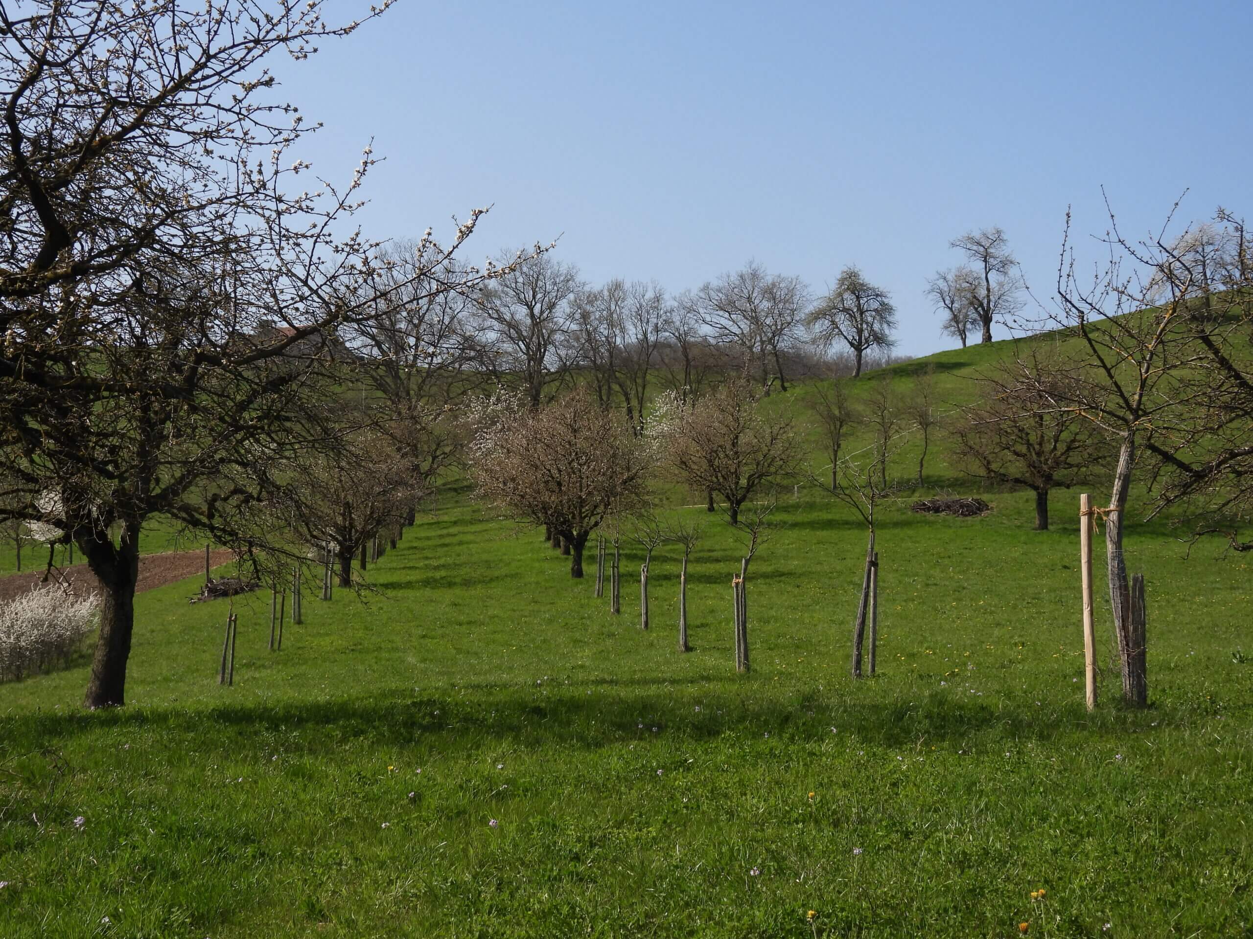 Das Käuzchen, wie der Steinkauz auch genannt wird, wurde schon als «Vogel des Jahres» ausgerufen. Im Jahre 2000 startete das BirdLife-Artenförderungsprogramm. Die Nordwestschweiz stand immer wieder im Fokus, weil hier die Tradition und Pflege der Obstgärten rund um die Dörfer, sog. Streuobstwiesen, lange intakt war. Viele Naturschützer und örtliche Natur-und Vogelschutzvereine beteiligen sich an Förderprogrammen, welche auch von der Vogelwarte Sempach und vom Bundesamt für Umwelt unterstützt werden. Es geht nicht einfach um Vogelschutz. Das Ziel bleibt die Biodiversität im Kulturland, also von möglichst vielen naturnahen Lebensräumen. Viele der verbliebenen oder möglichen Brutplätze der kleinen Eule liegen in den Baumgürteln welche die Siedlungen umschließen. Sie ernährt sich vorwiegend von größeren Insekten, Würmern, Amphibien und Mäusen. Als Ansitzjäger späht sie ihre Beute aus, bevor sie blitzartig anfliegt und vom Boden her zugreift. In vielen europäischen Ländern ist die Vogelwelt bedroht. Der Steinkauz ist eine der betroffenen Arten. «Europaweit haben wir innert 200 Jahren 80% aller Vögel verloren», wurde kürzlich im Fachmagazin «0rnis» festgestellt. Es fehlen für viele von ihnen die artenreichen Trockenwiesen. Für die Förderung der Biodiversität wird je länger je mehr erkannt, wie wichtig Obstgartenprojekte sind, verbunden auch mit vielen Kleinstrukturen, wie Gebüsch, Steinhaufen, Trockenmauern, Nistkästen und Wildbienenhotels, welche eine Bereicherung darstellen. Die Palette der Regionalprodukte ist stetig gewachsen, was letztlich auch durch den Markt der Artenvielfalt dient. Das Bild zeigt die Aufwertung eines Obstgartens mit Jungbäumen in Gipf-Oberfrick. Wie steht es um die Vielfalt und den Reichtum der Obstgärten in unserer Region? Hat der Steinkauz wieder vermehrt eine Chance in unserem Juragebiet? Auf einem Streifzug durch die strukturreiche Landschaft von Frick und Gipf-Oberfrick wird der Steinkauz- Experte Jonas Leuenberger spannendes zur Art und zu ihren Lebensraumansprüchen aufzeigen. Die Exkursion findet am Samstag, 29. Mai 2021 von 9 bis 12 Uhr statt. Eine Anmeldung ist nötig beim Jurapark Aargau, Tel. 062 877 15 04. Treffpunkt ist der Bahnhof Frick; die Leitung hat Flumi Brennwald vom Verein der Fricktaler Bio-Hochstammprodukte.